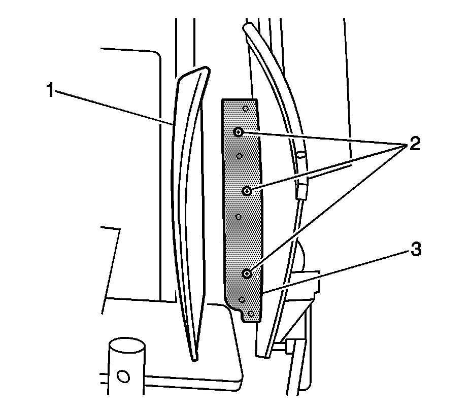 4. Using a grease pencil, mark the location of the screws (2) on the quarter window bracket (3).