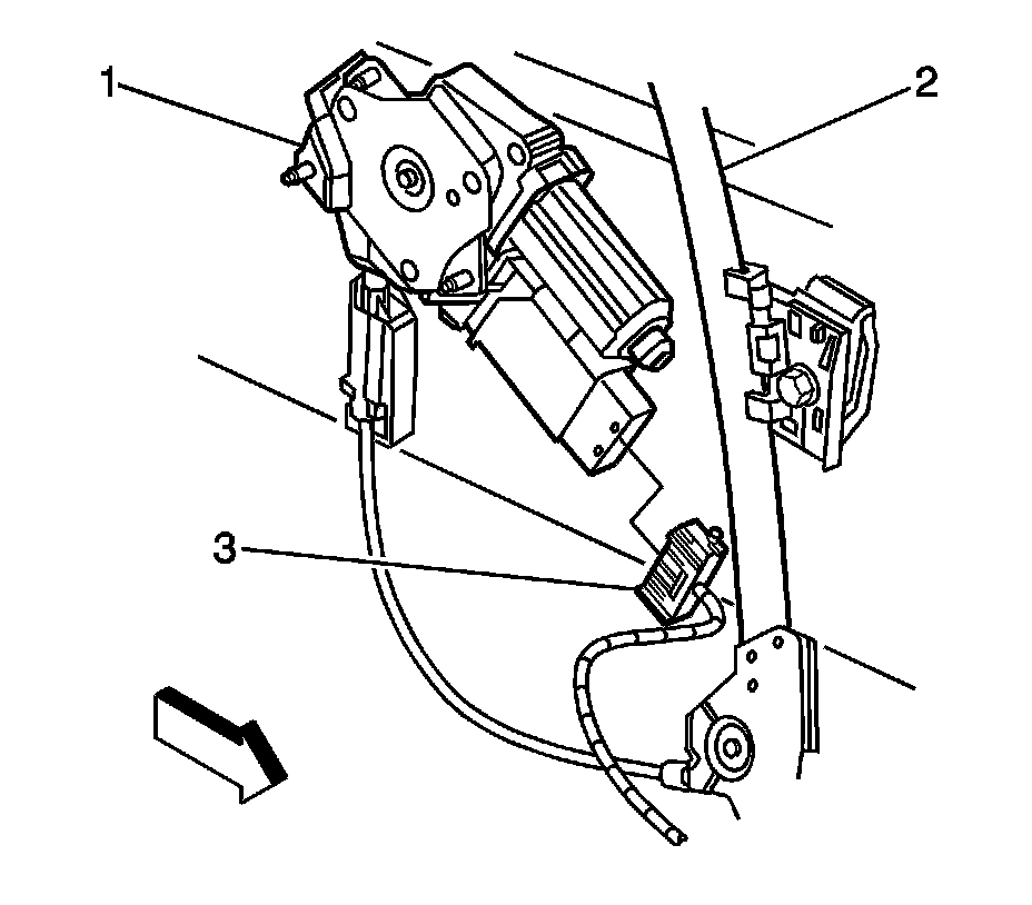 Note: The window motor and door module are sealed from the factory, and are serviced as part of the regulator assembly. The entire unit must be replaced if repairs are necessary.