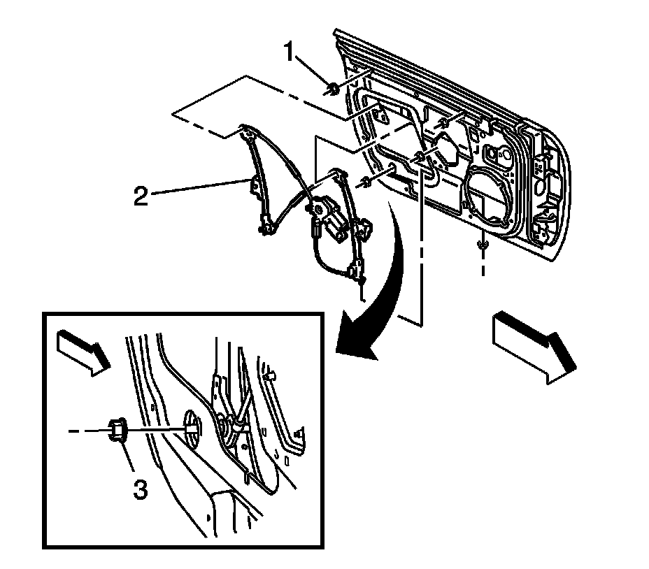 10. Remove the door window. Refer to Door Window Replacement (Door Window Replacement).