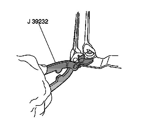 3. Using the J 39232 , disconnect the wiper transmission from the wiper motor crank arm.