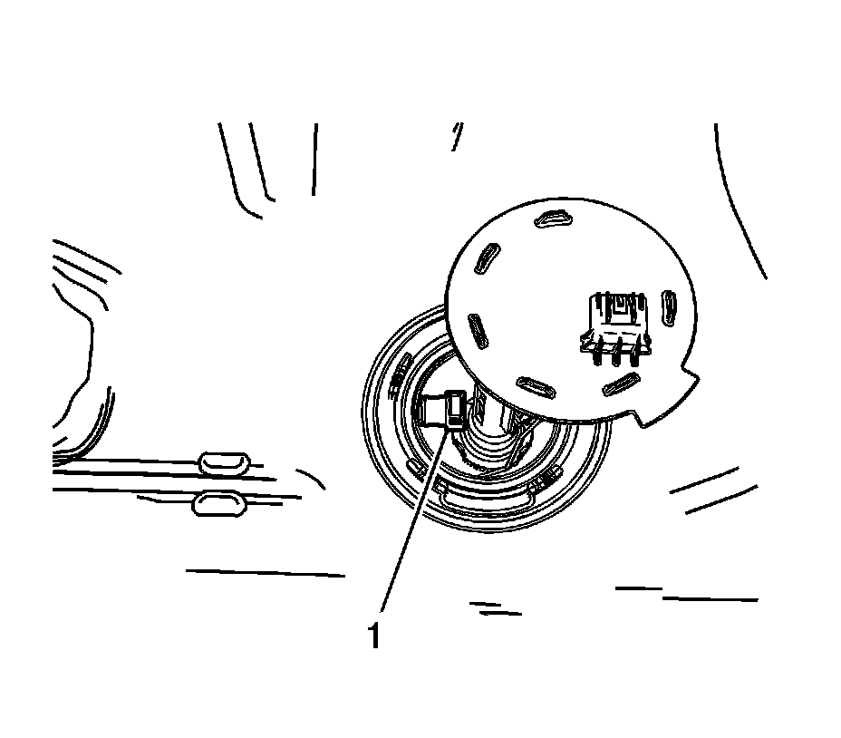 1. Remove the fuel tank in order to gain access to the secondary fuel tank module (2). Refer to Fuel Tank Replacement (Removal and Replacement).