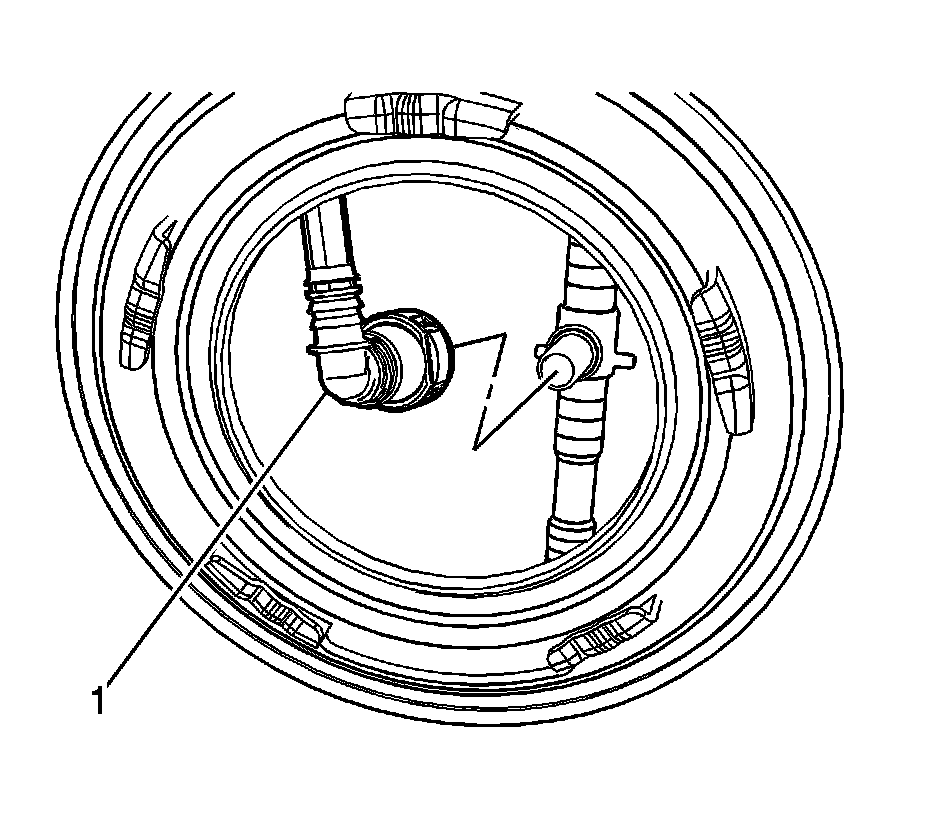 6. Disconnect the fuel transfer hose quick connect fitting (1). Refer to Plastic Collar Quick Connect Fitting Service (Plastic Collar Quick Connect Fitting Service).