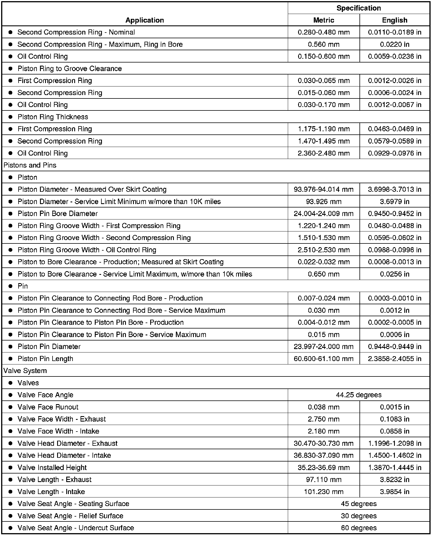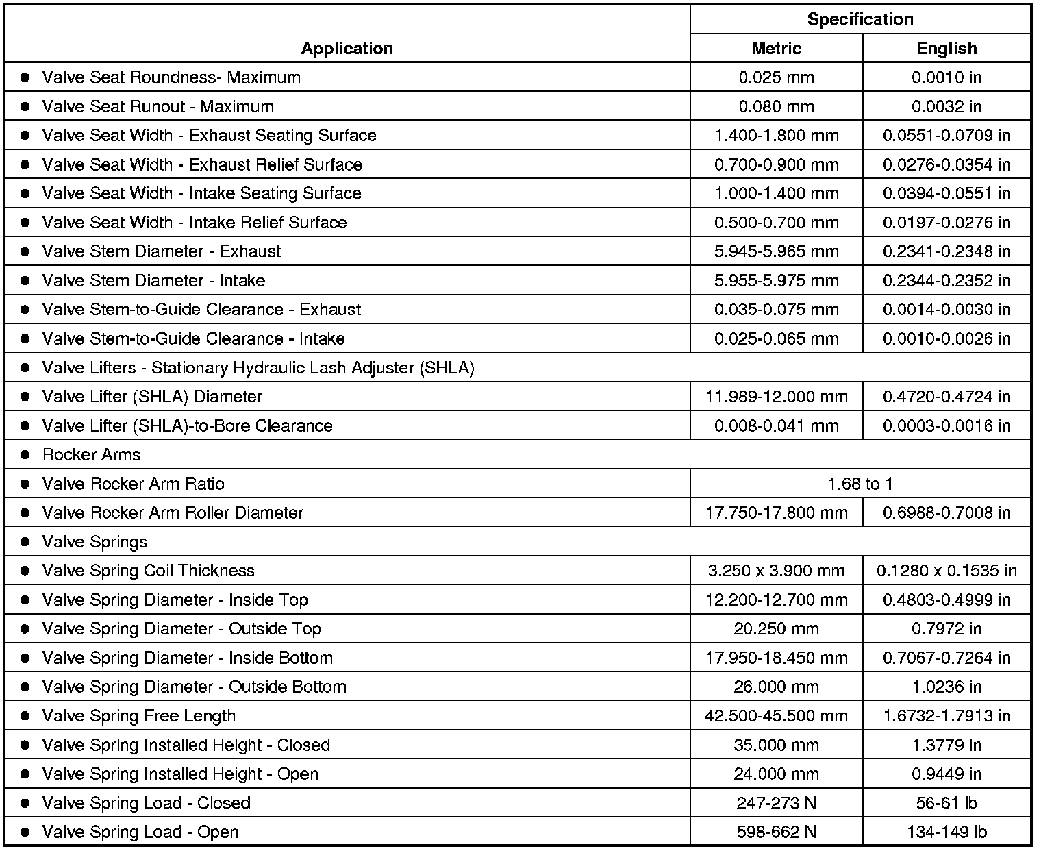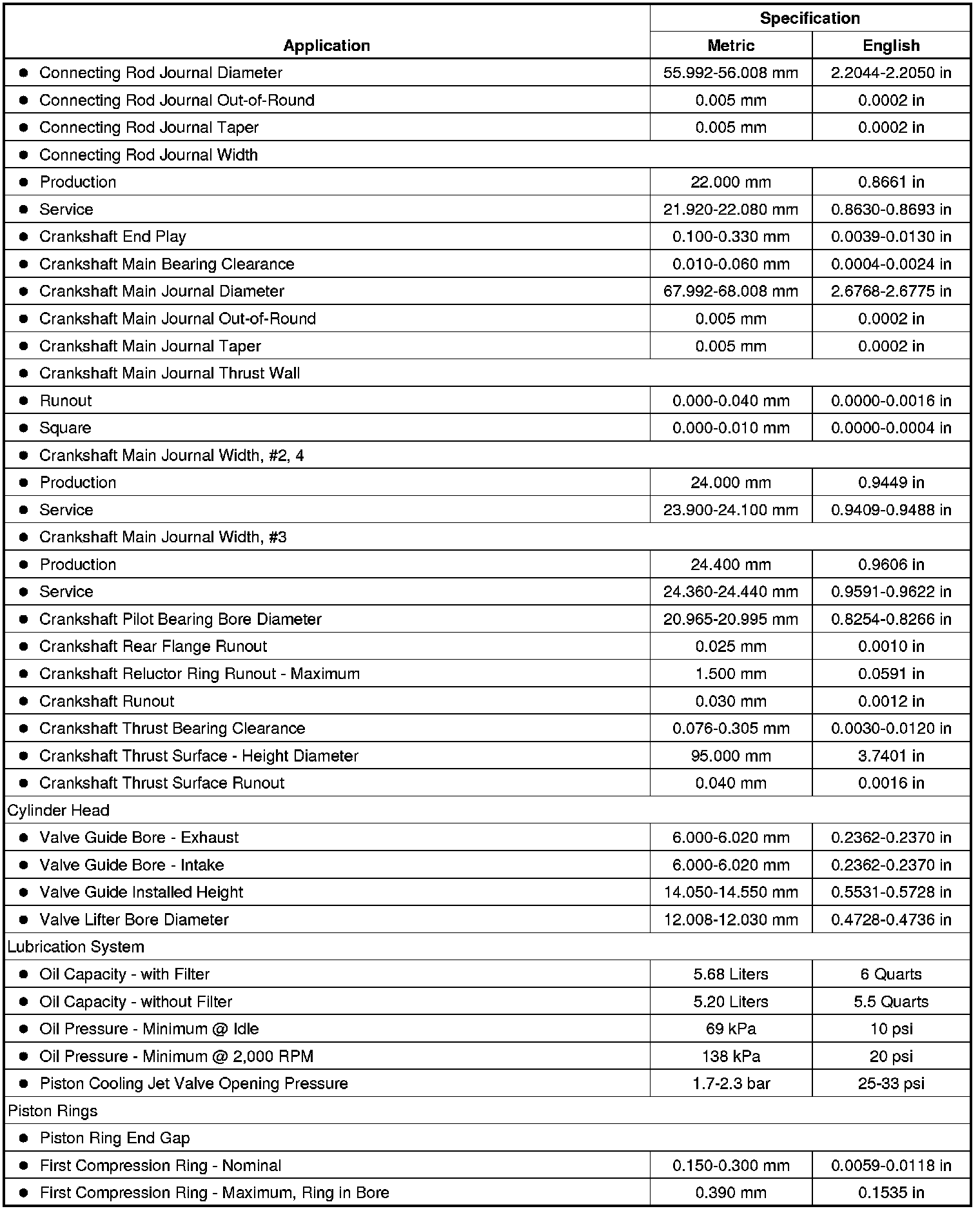 Engine Mechanical Specifications