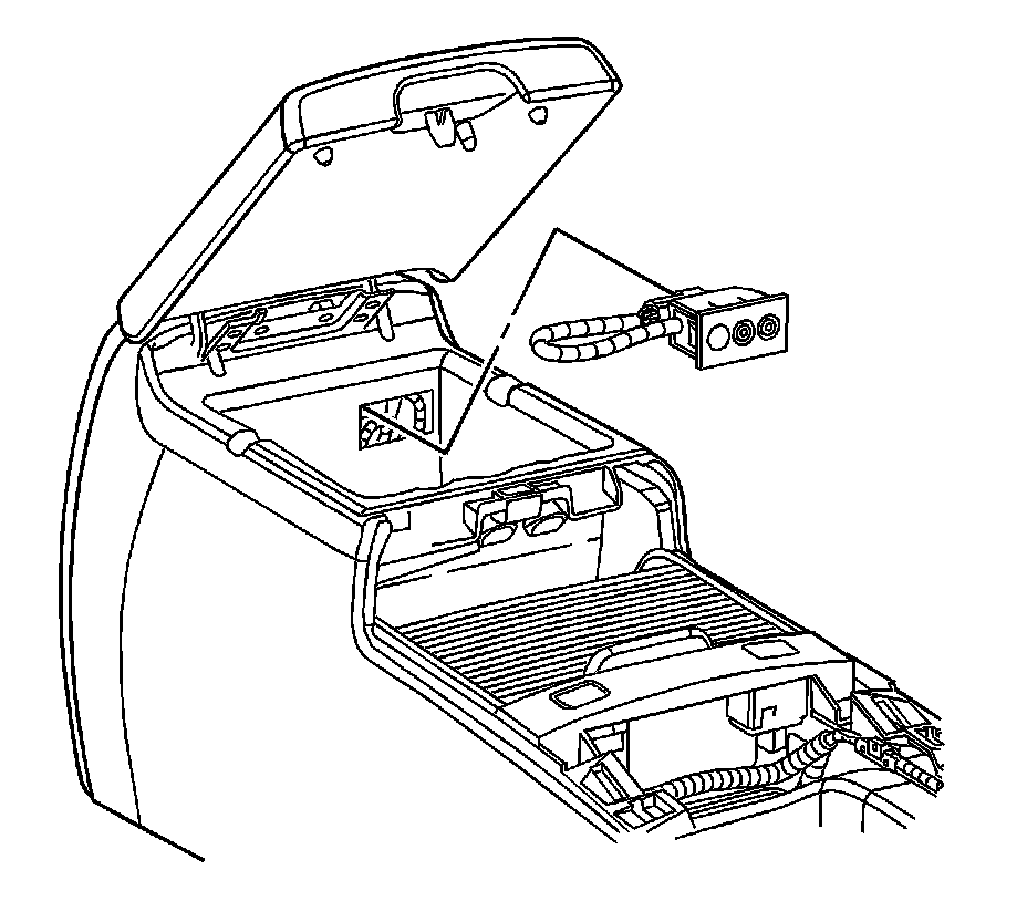 2. Push the audio video jack into the center floor console bin in order to secure the locking tabs on the jack.