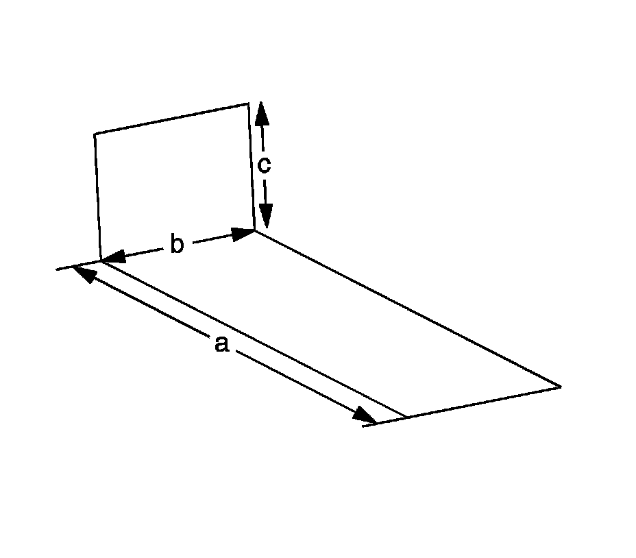 2. The area needed for aiming of the distance sensing cruise control (DSCC) will consist of a vertical wall and a level surface 8 m (26 ft 2 in) in length (a), 3 m (9 ft 9 in) in width (b), and 2 m (6 ft 6 in) in height (c).
