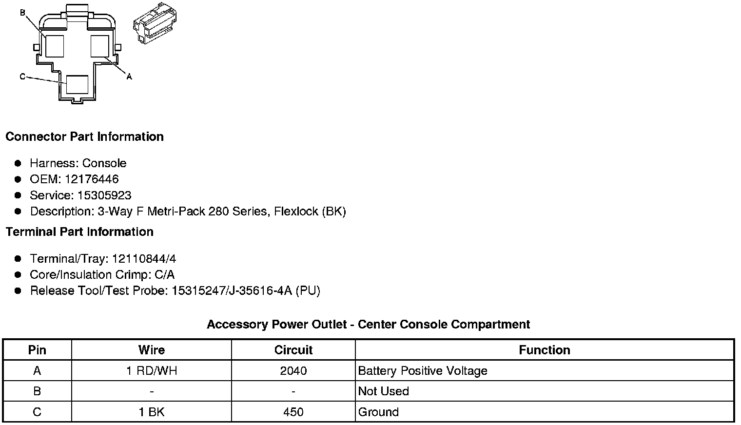 Accessory Power Outlet - Center Console (without DT4)