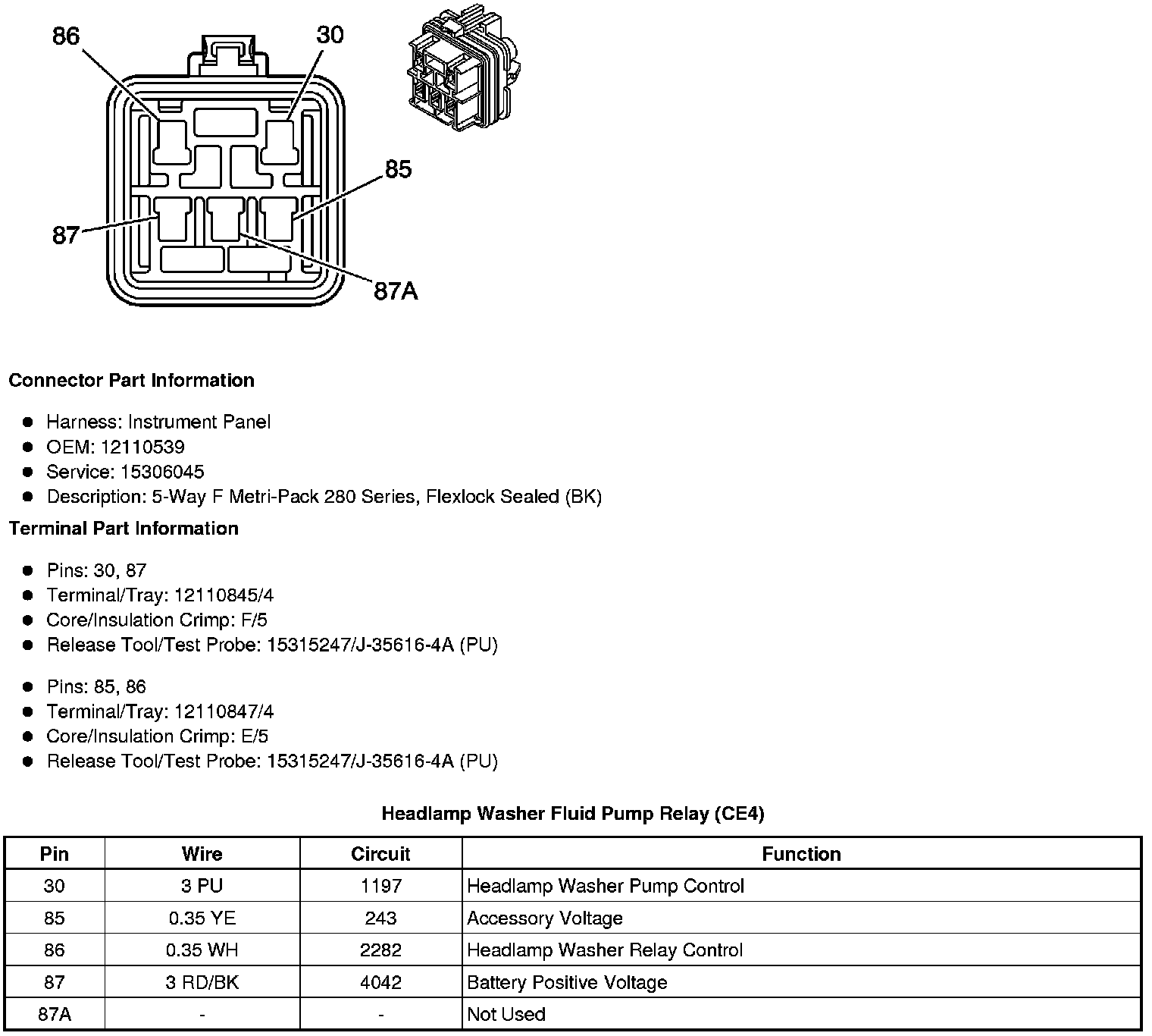 Headlamp Washer Fluid Pump Relay (CE4)