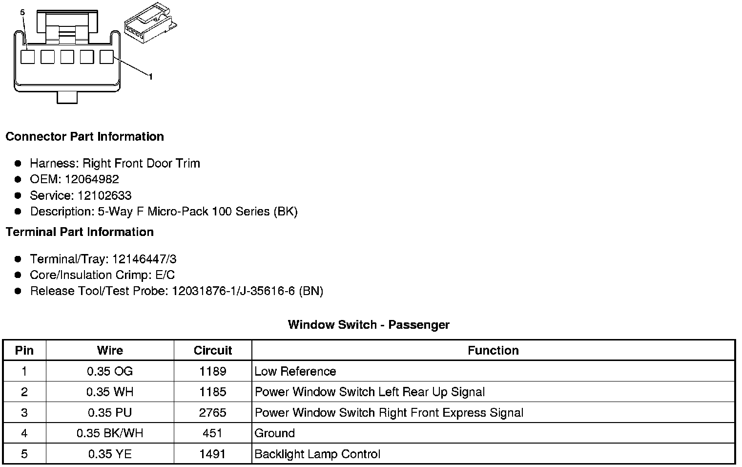 Window Switch - Passenger