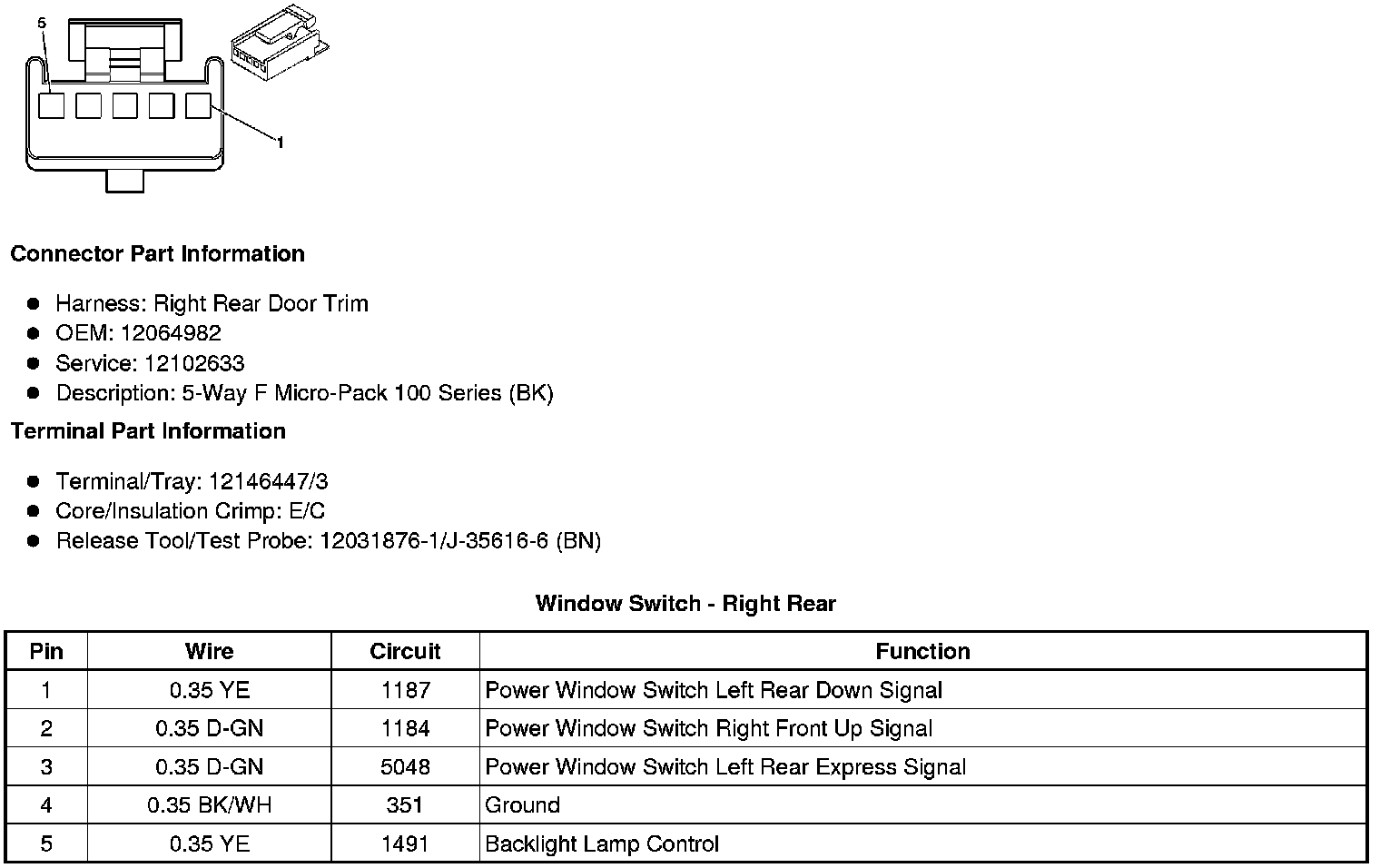 Window Switch - Right Rear