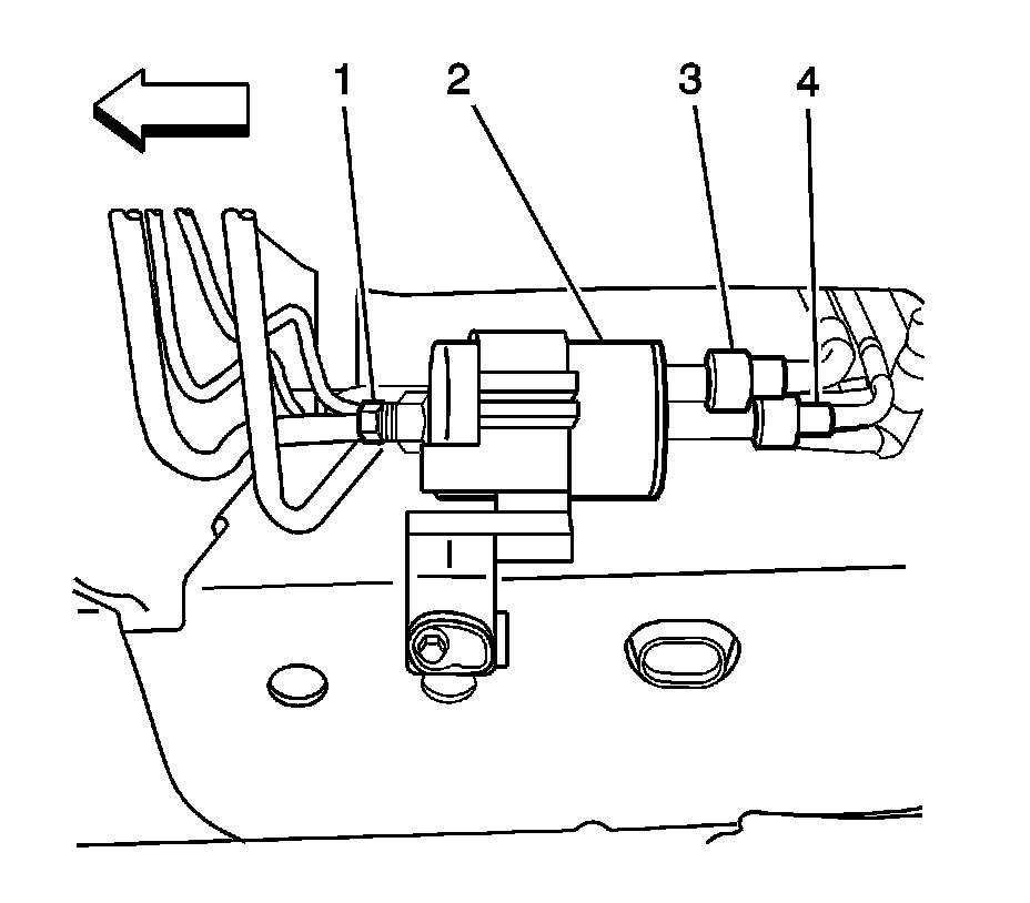 4. Disconnect the quick-connect fittings (3 and 4) at the fuel filter inlet. Refer to Metal Collar Quick Connect Fitting Service (Metal Collar Quick Connect Fitting Service) or Plastic Collar Quick Connect Fitting Service (Plastic Collar Quick Connect Fitting Service).