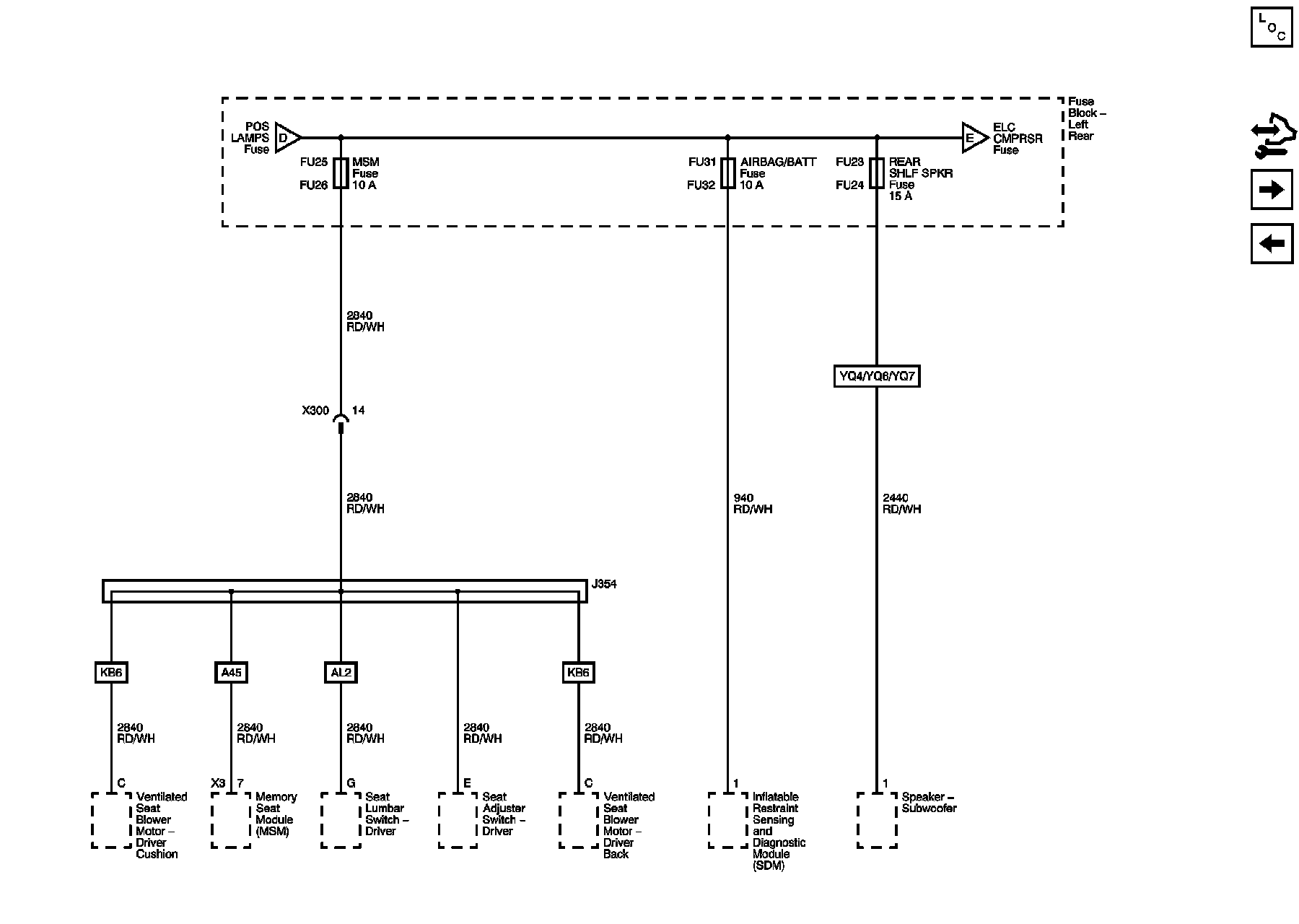AIRBAG/BATT, MSM, and REAR SHLF SPKR Fuses