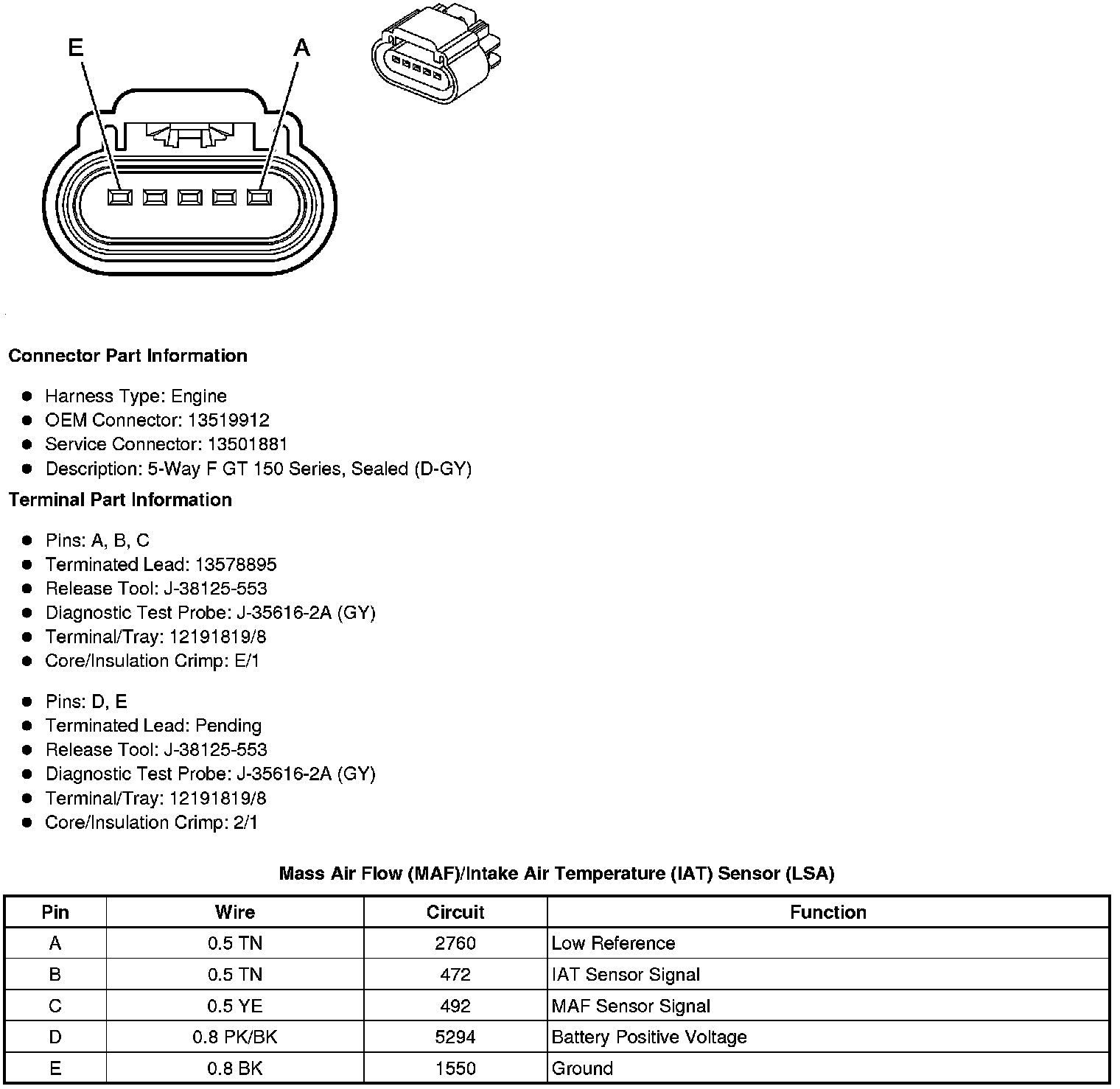 Mass Air Flow (MAF)/Intake Air Temperature (IAT) Sensor (LSA)
