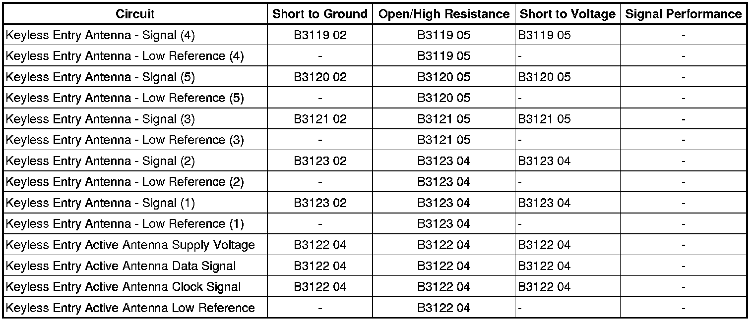 5. If all circuits test normal, test or replace the keyless entry antenna.
