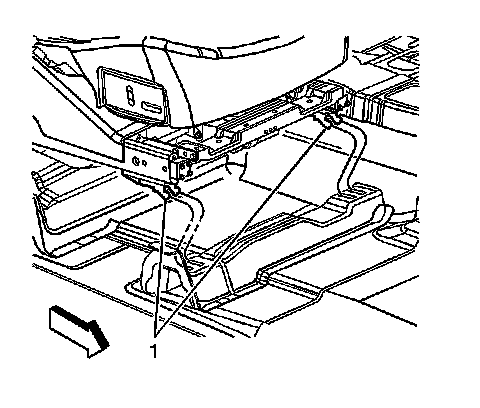 2. Move the front seat forward in order to access the front seat track trim cover (1).
