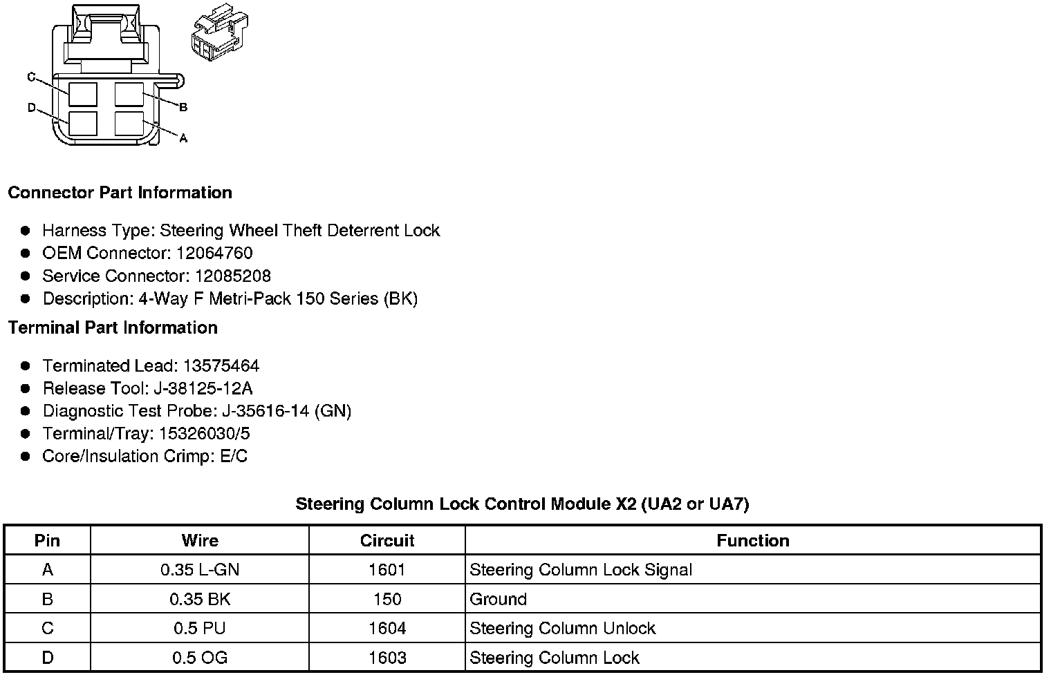 Steering Column Lock Control Module X2 (UA2 or UA7)