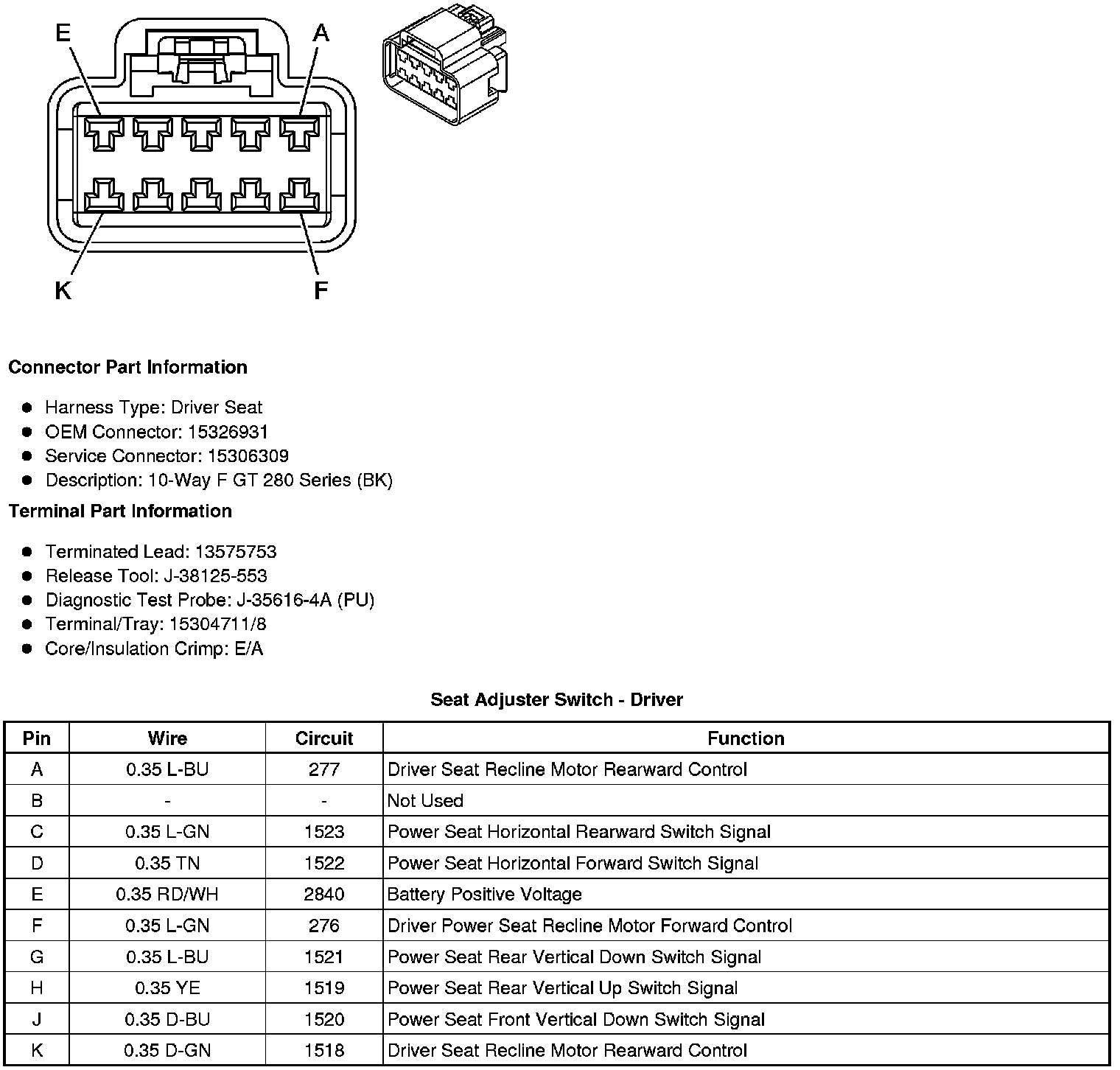 Seat Adjuster Switch - Driver