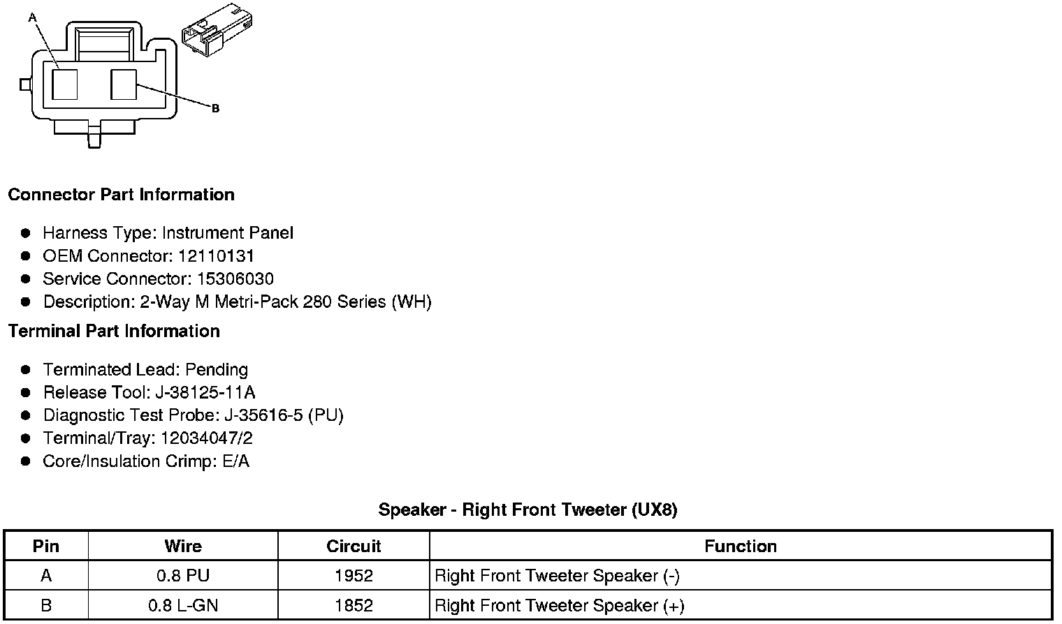 Speaker - Right Front Tweeter (UX8)