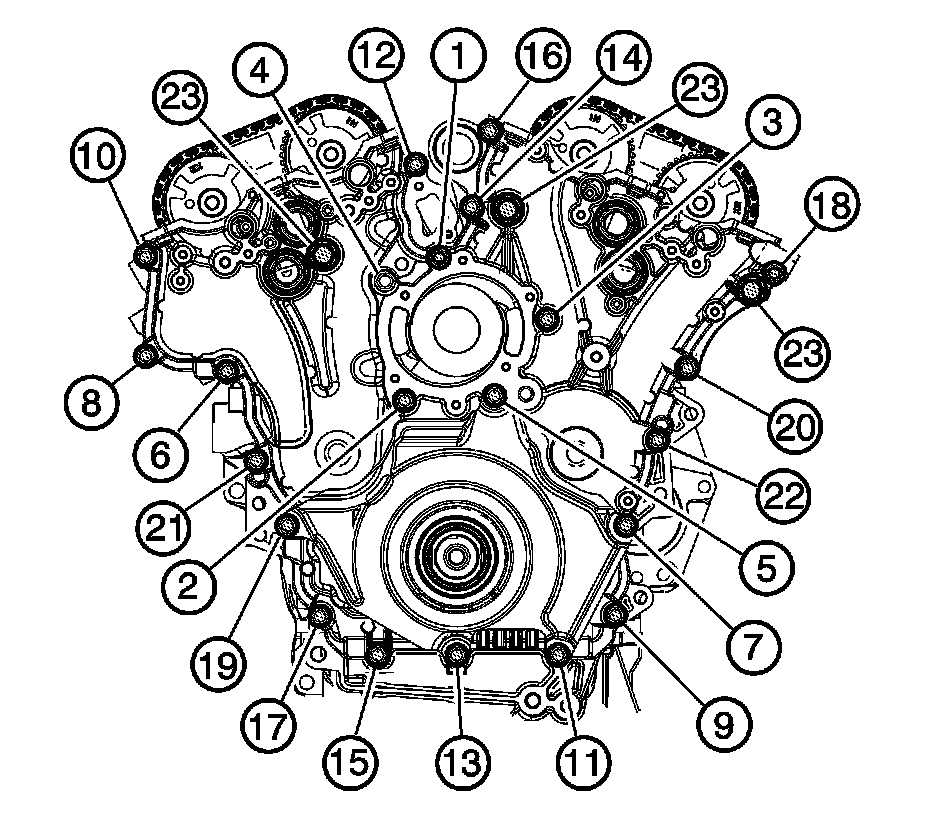 Front cover bolts (23) 65 Nm (48 lb ft)