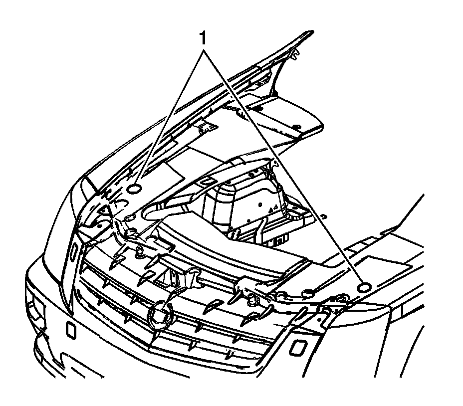 Aiming of each of the headlamps is done by turning the vertical (1) adjusting screw which moves the headlamp bulb in relation to the headlamp assembly. The adjusting screw is located inboard of the front fender wheelhouse panel. The high beam will be correctly aimed if the low beam is aimed properly.