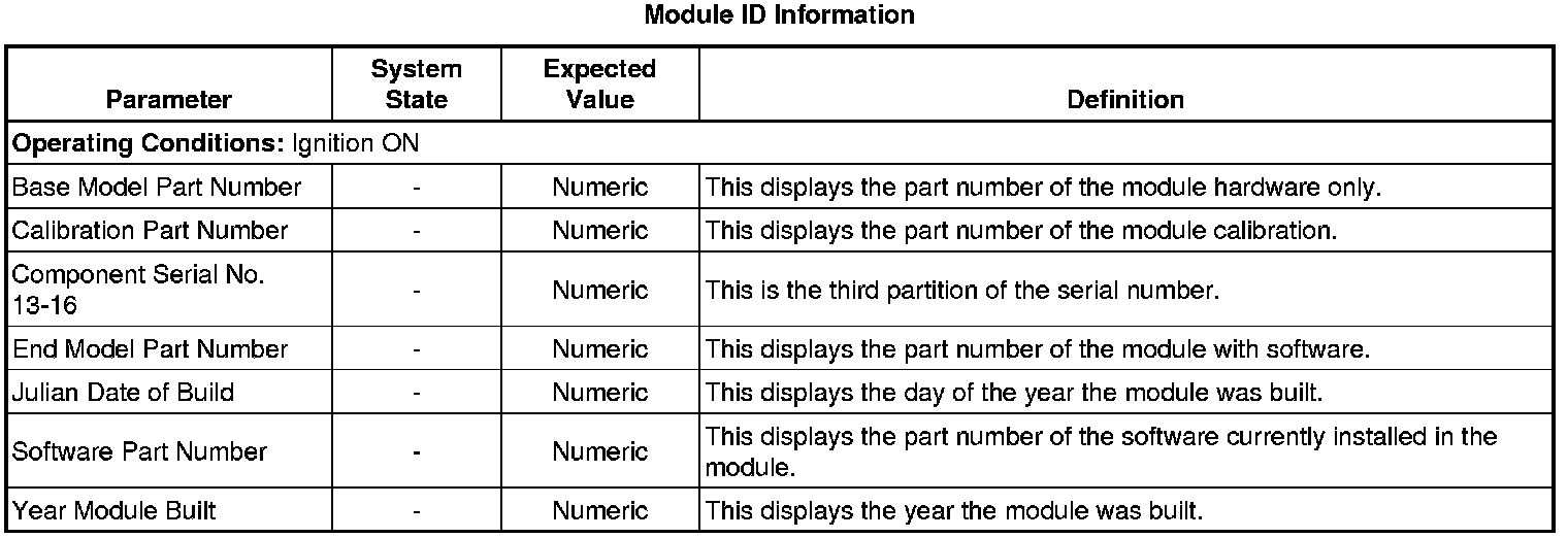 Headlamp Control Module Scan Tool Information (Module ID Information)