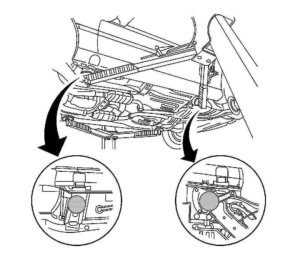 Danger: To avoid any vehicle damage, serious personal injury or death when major components are removed from the vehicle and the vehicle is supported by a hoist, support the vehicle with jack stands at the opposite end from which the components are being removed and strap the vehicle to the hoist.