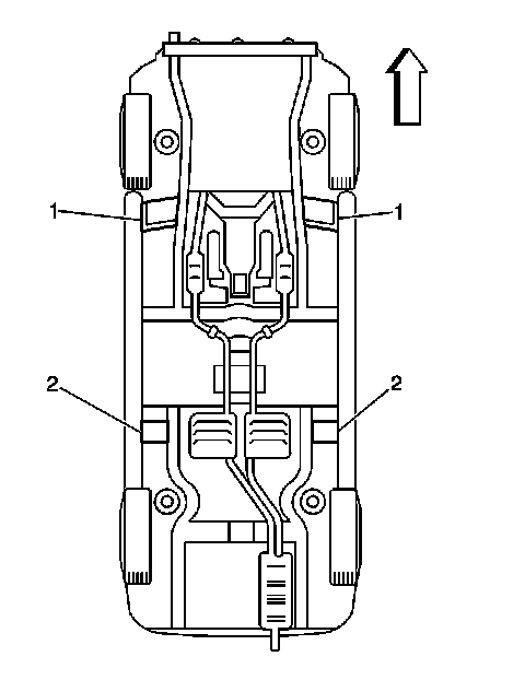Caution: When you are jacking or lifting a vehicle at the frame side rails or other prescribed lift points, be certain that the lift pads do not contact the catalytic converter, the brake pipes or the fuel lines. If such contact occurs, vehicle damage or unsatisfactory vehicle performance may result.