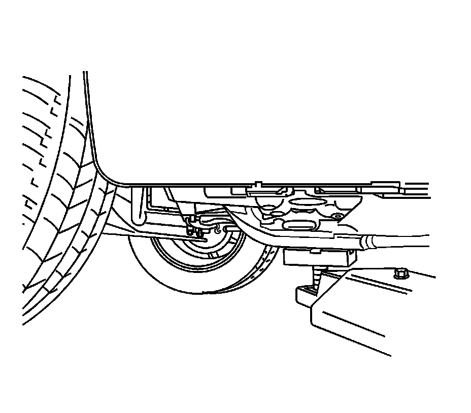 Note: The jack stands must not contact the rocker panels, the floor pan, or the stone guard moldings.