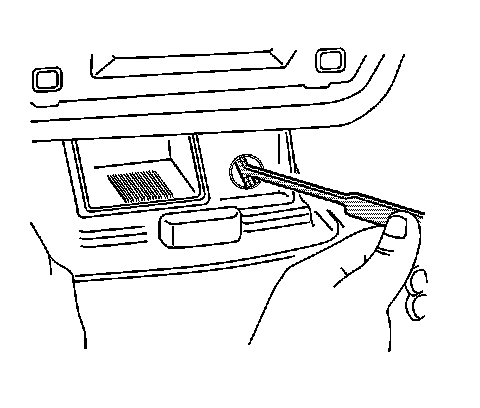 3. Remove the cigar lighter socket by placing one side of the T portion of the tool J 42059 into the tab window and then the other should be angled into the opposite tab window, then pull the lighter socket straight out.