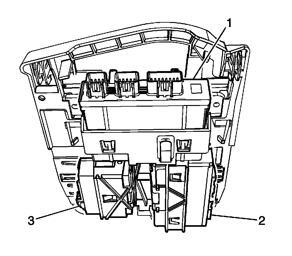 1. Remove the rear upper compartment trim. Refer to Rear Compartment Trim Panel Replacement (Rear Compartment Trim Panel Replacement).