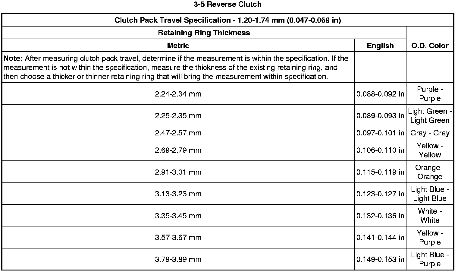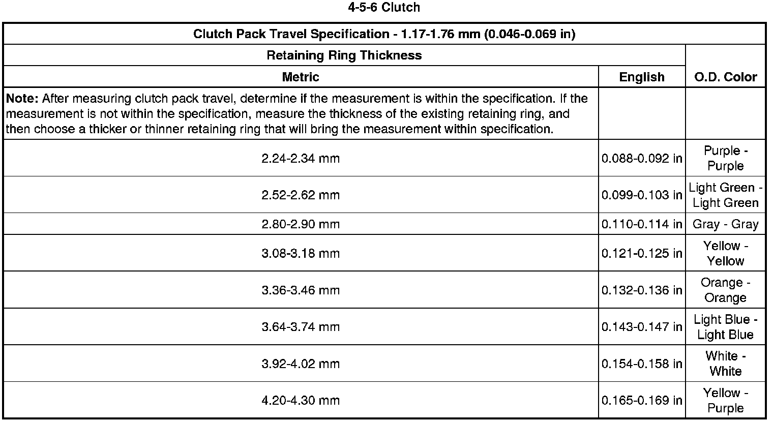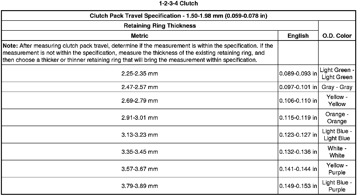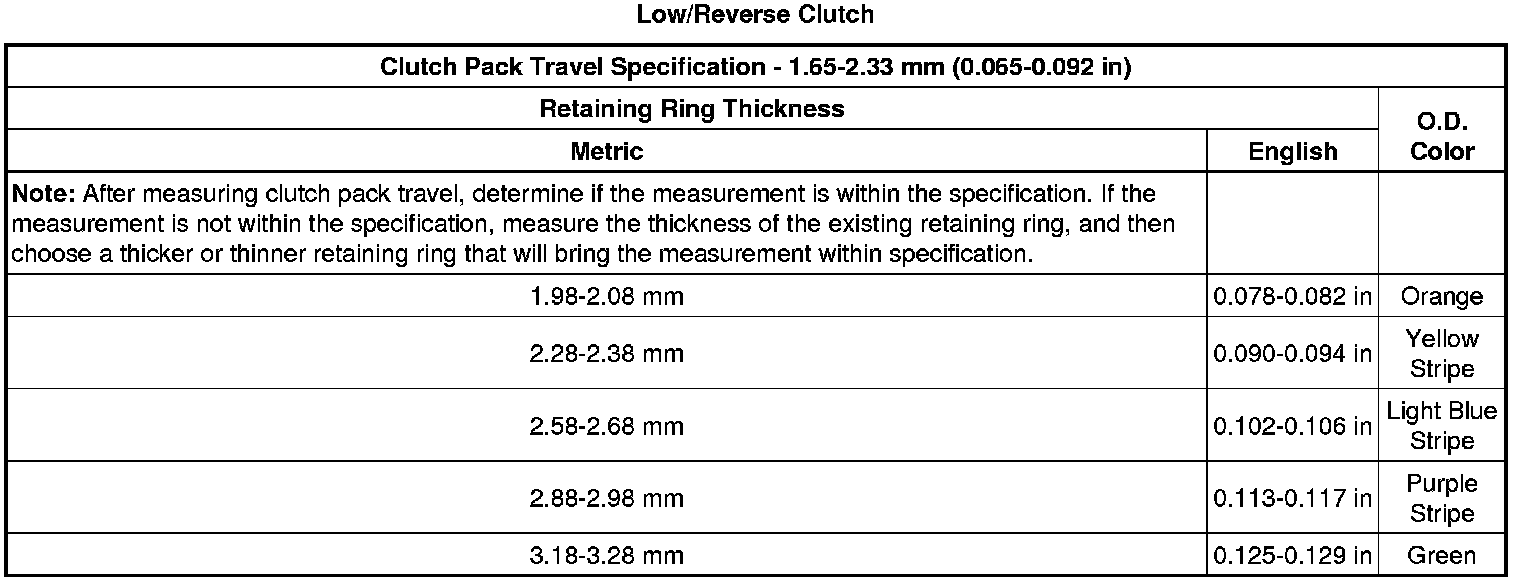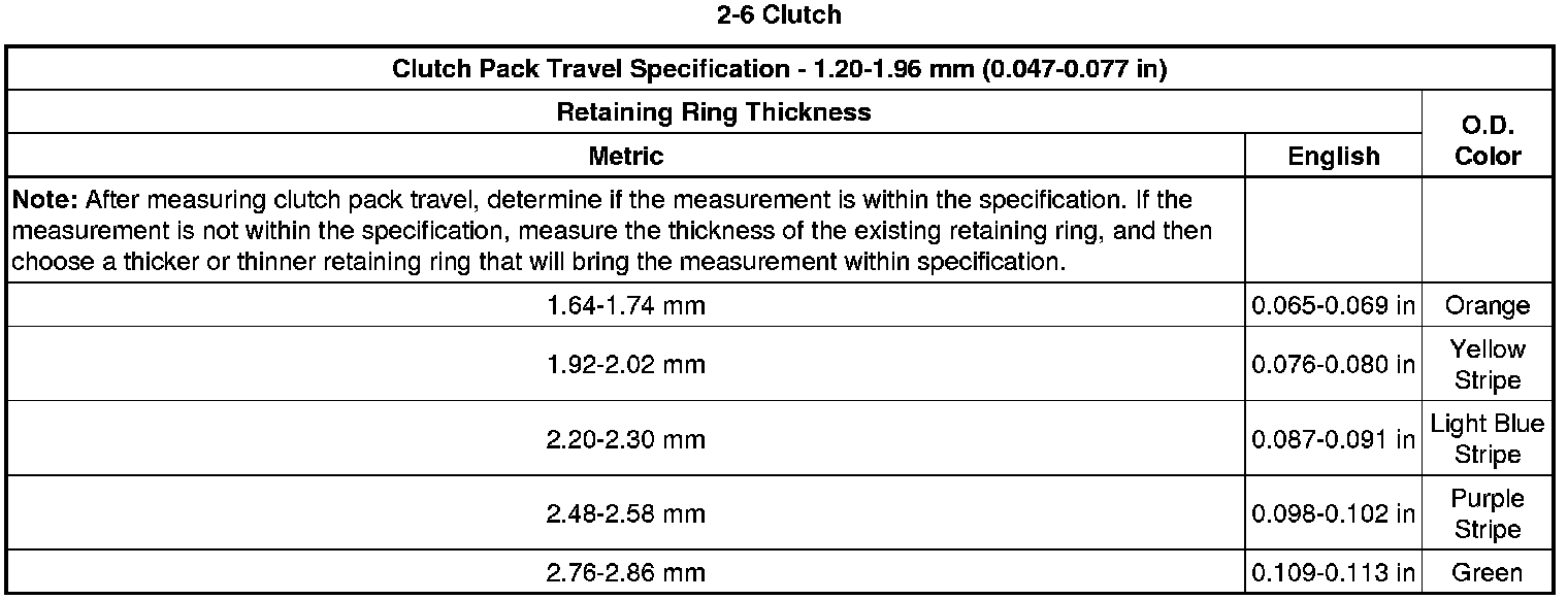 Clutch Backing Plate Retaining Ring Specifications (6L50)
