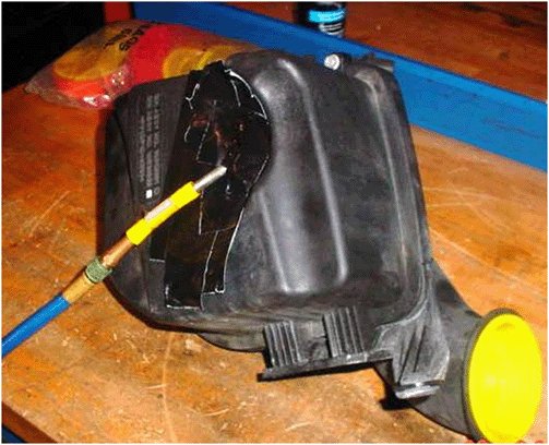 2. Next, plug the inlet duct with a plastic plug (J-41413-200 Kit), then duct tape the outlet duct openings shut.