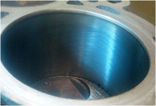 It is critical to evaluate the piston ring wear/cylinder bore cross hatch. Some minor scratches may be noticed on the cylinder walls during piston ring replacement. If the scratch cannot be felt when running your finger nail over it, the scratch is considered normal wear and the block or engine should not be replaced. Clean the cylinder bores with P/N 19287401 Brake Clean (in Canada, P/N 88901247) or equivalent. Do not hone the cylinder bores. Wipe out bore using a soft lint free cloth.