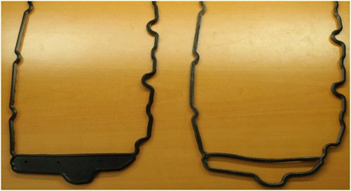 A new camshaft cover seal with a splash deflector has been released (For 1-3-5- bank 1) (New design on the left). Refer to the Parts Information below.