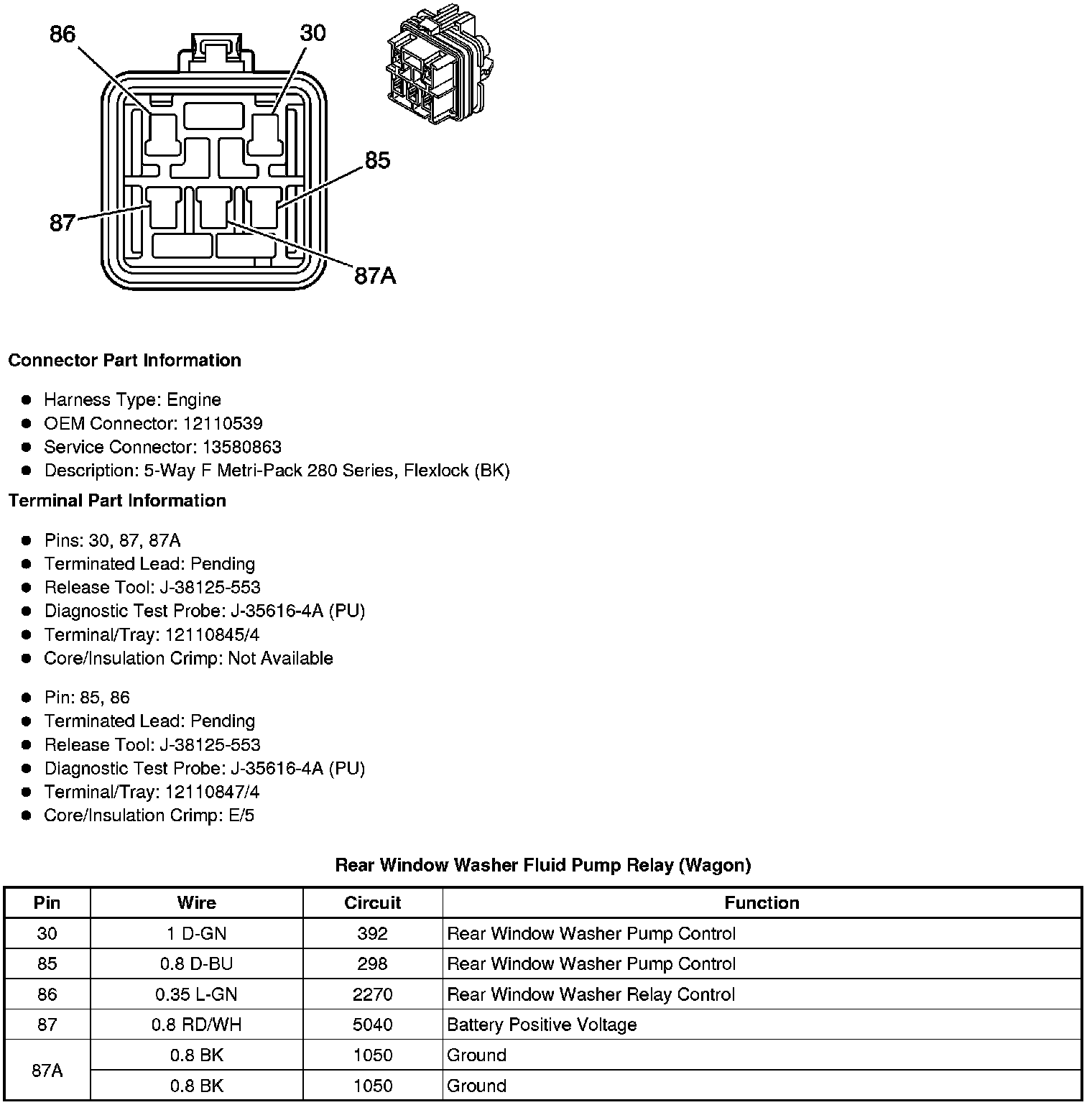 Rear Window Washer Fluid Pump Relay (Wagon)