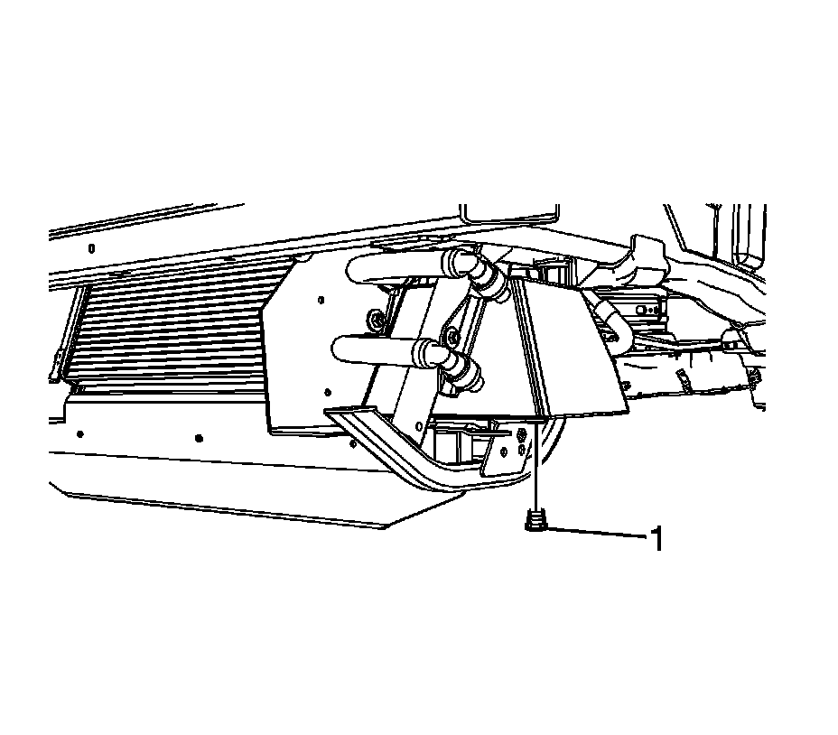 19. Remove the front compartment lower noise shield. Refer to Front Compartment Lower Noise Shield Replacement (All Wheel Drive) Front Compartment Lower Noise Shield Replacement (Rear Wheel Drive) .