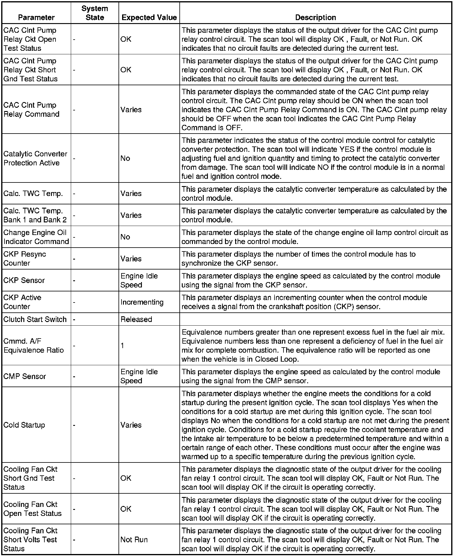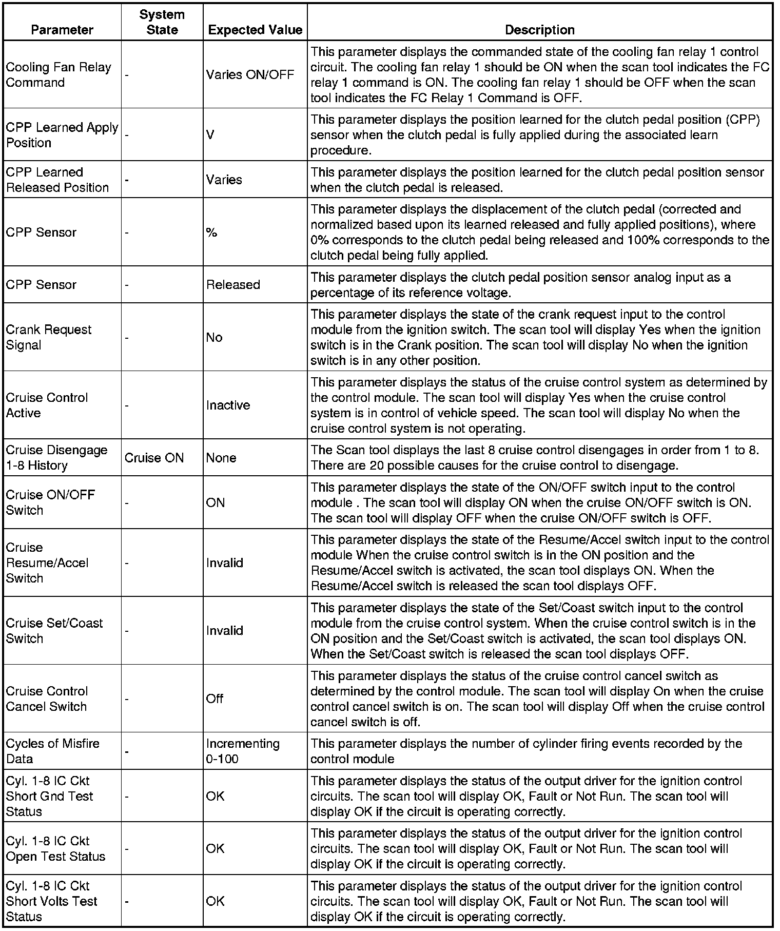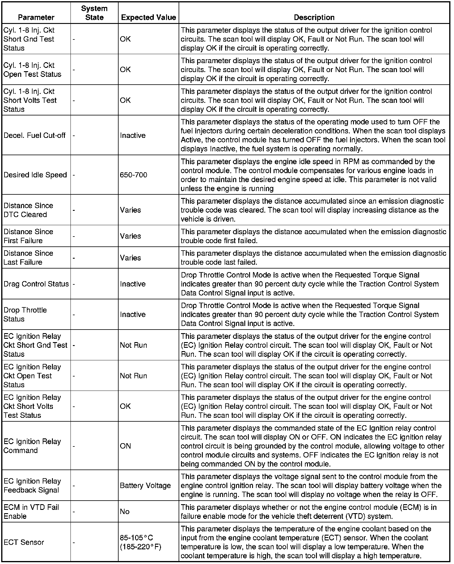 The Engine Control Module Scan Tool Data List contains all engine-related parameters that are available on the scan tool. The list is arranged in alphabetical order. A given parameter may appear in any one of the data lists, and in some cases may appear more than once, or in more than one data list in order to group certain related parameters together.