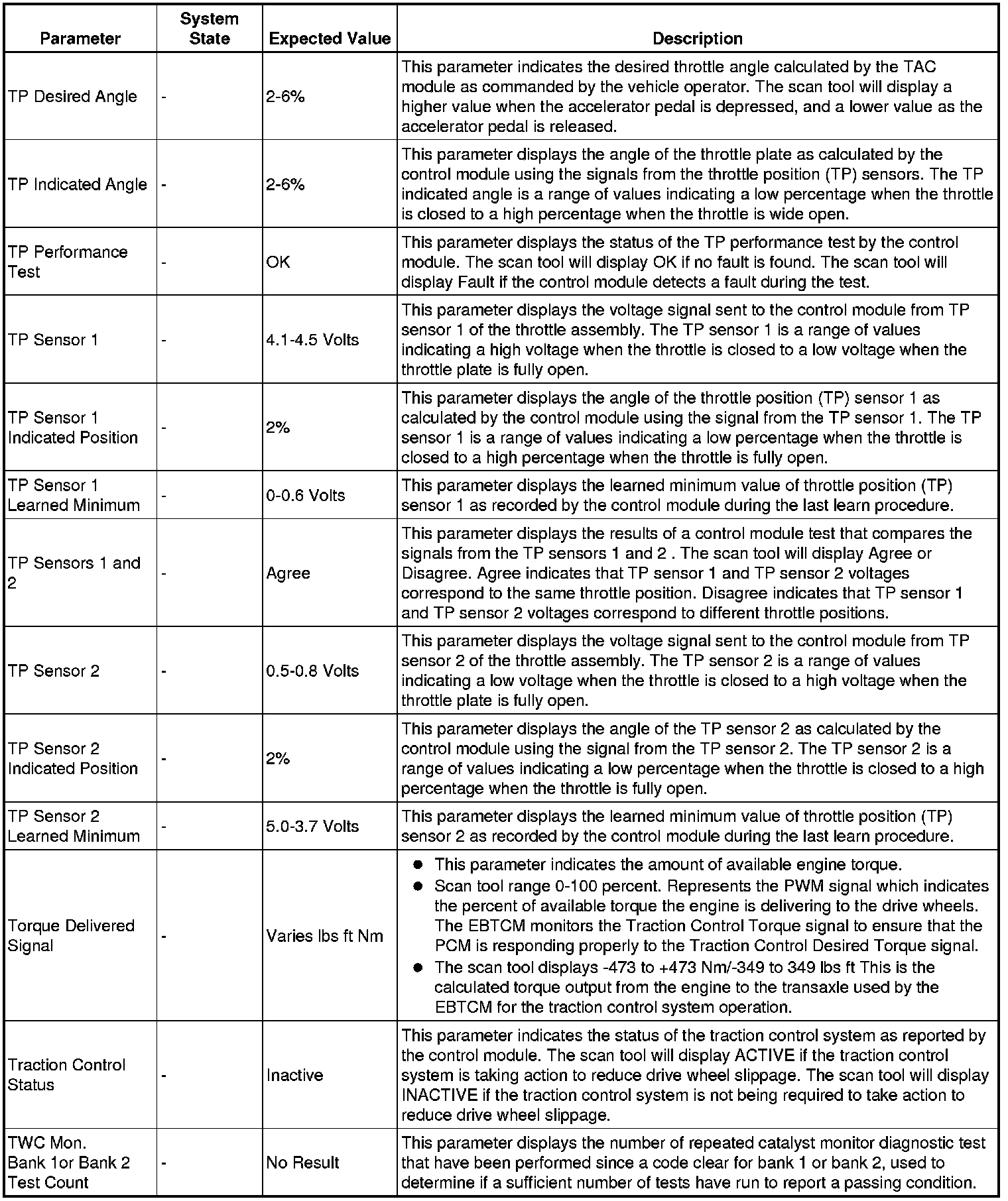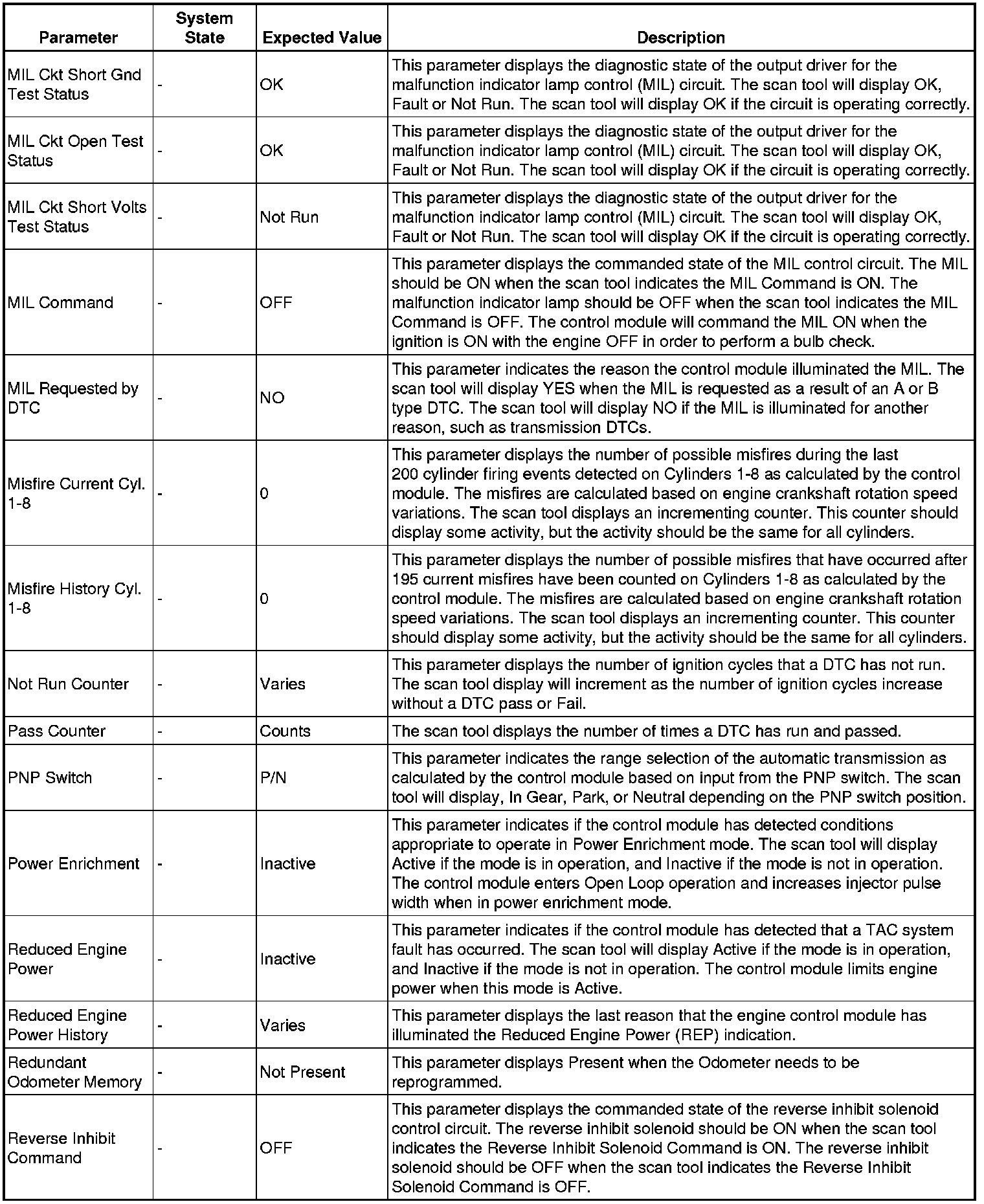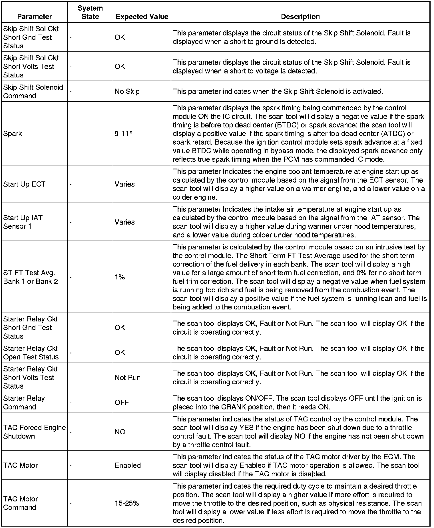 The Engine Control Module Scan Tool Data List contains all engine-related parameters that are available on the scan tool. The list is arranged in alphabetical order. A given parameter may appear in any one of the data lists, and in some cases may appear more than once, or in more than one data list in order to group certain related parameters together.