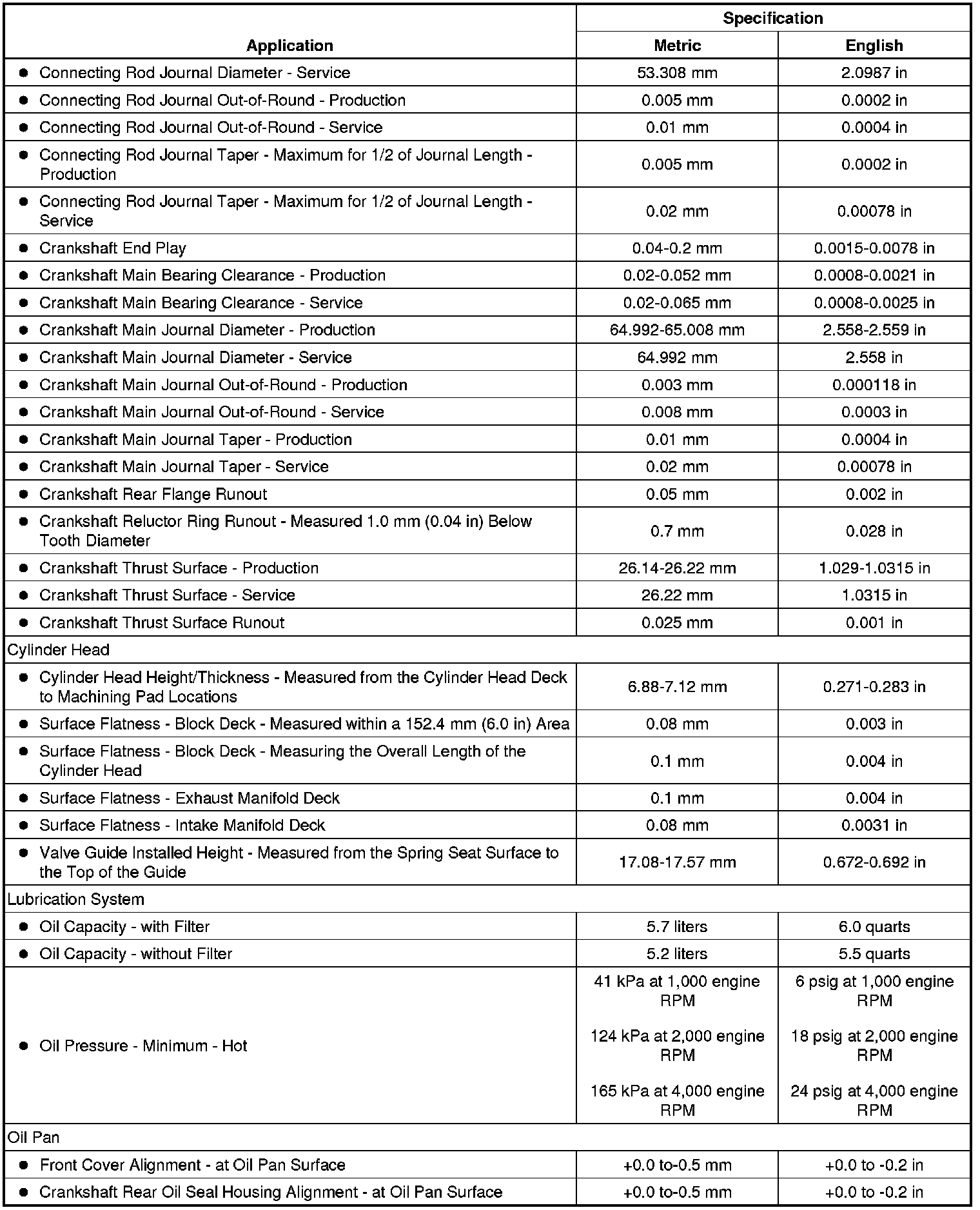 Engine Mechanical Specifications (6.2L LSA)