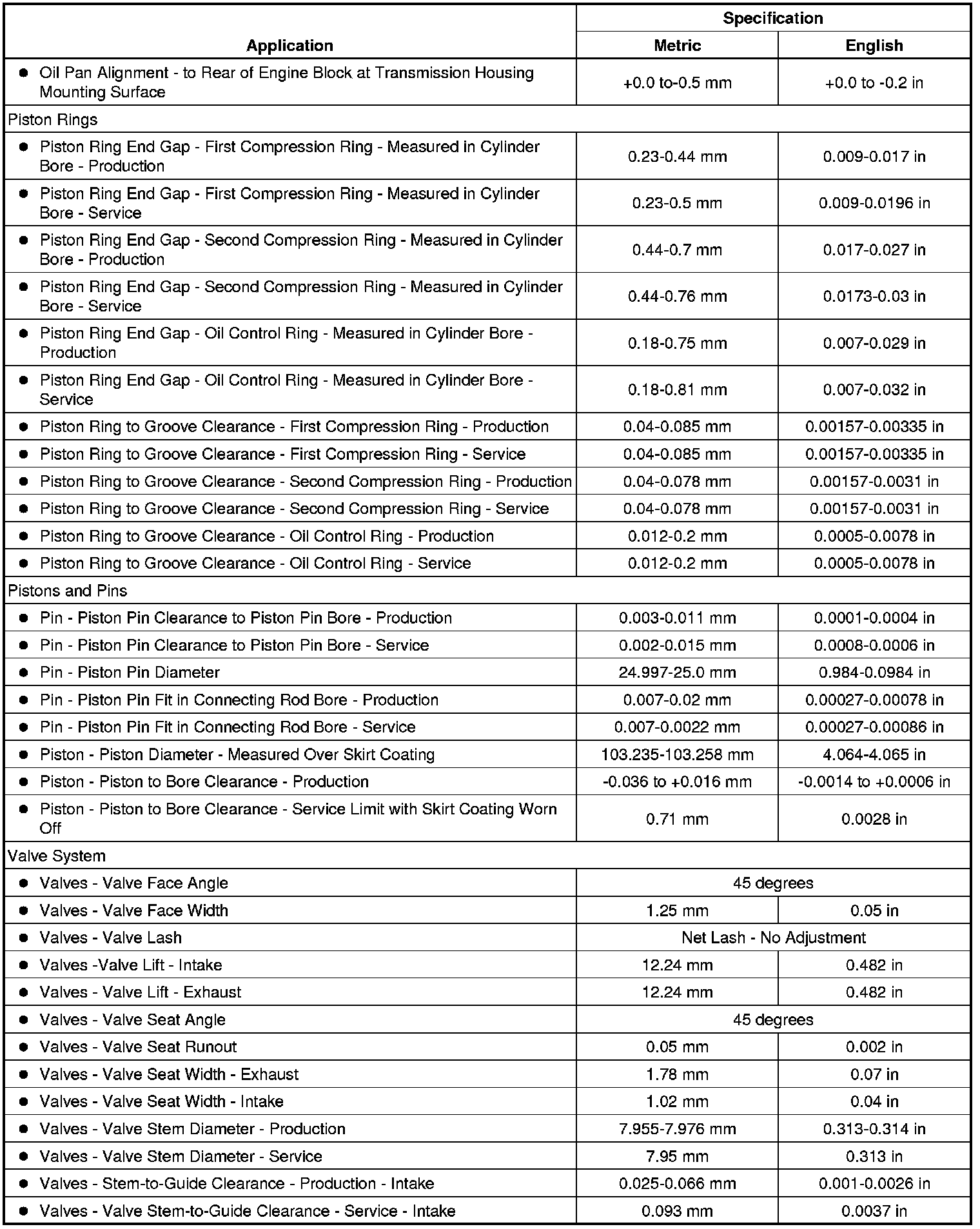 Engine Mechanical Specifications (LSA)