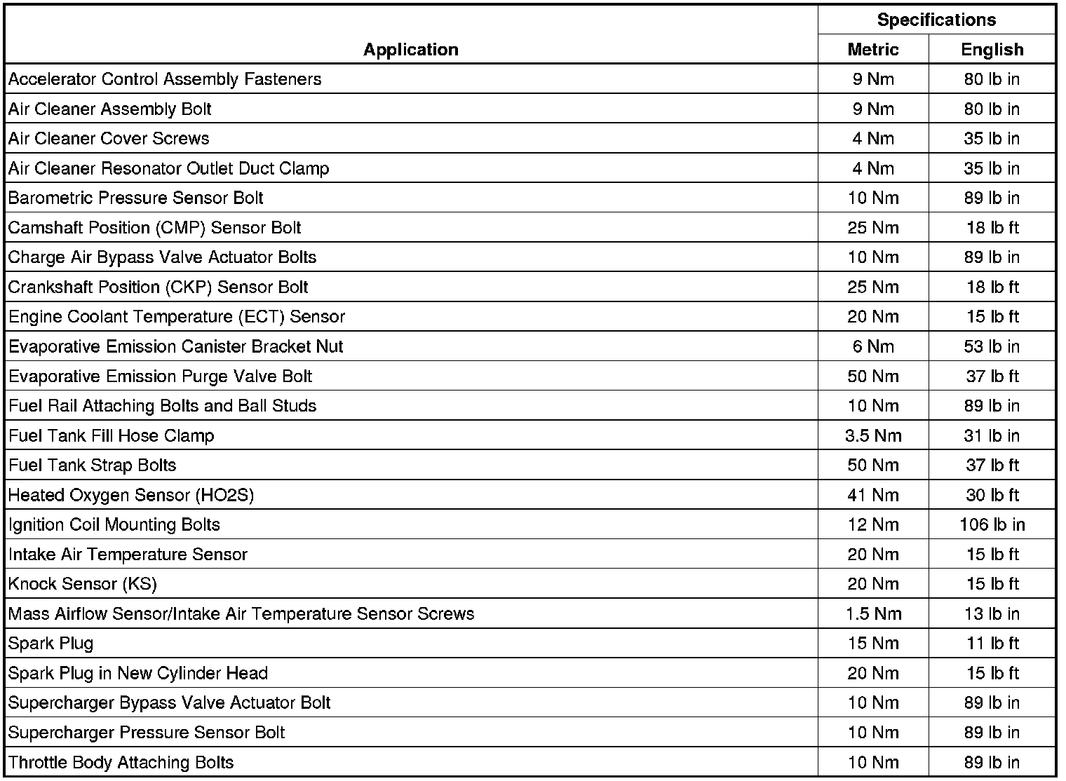 Fastener Tightening Specifications