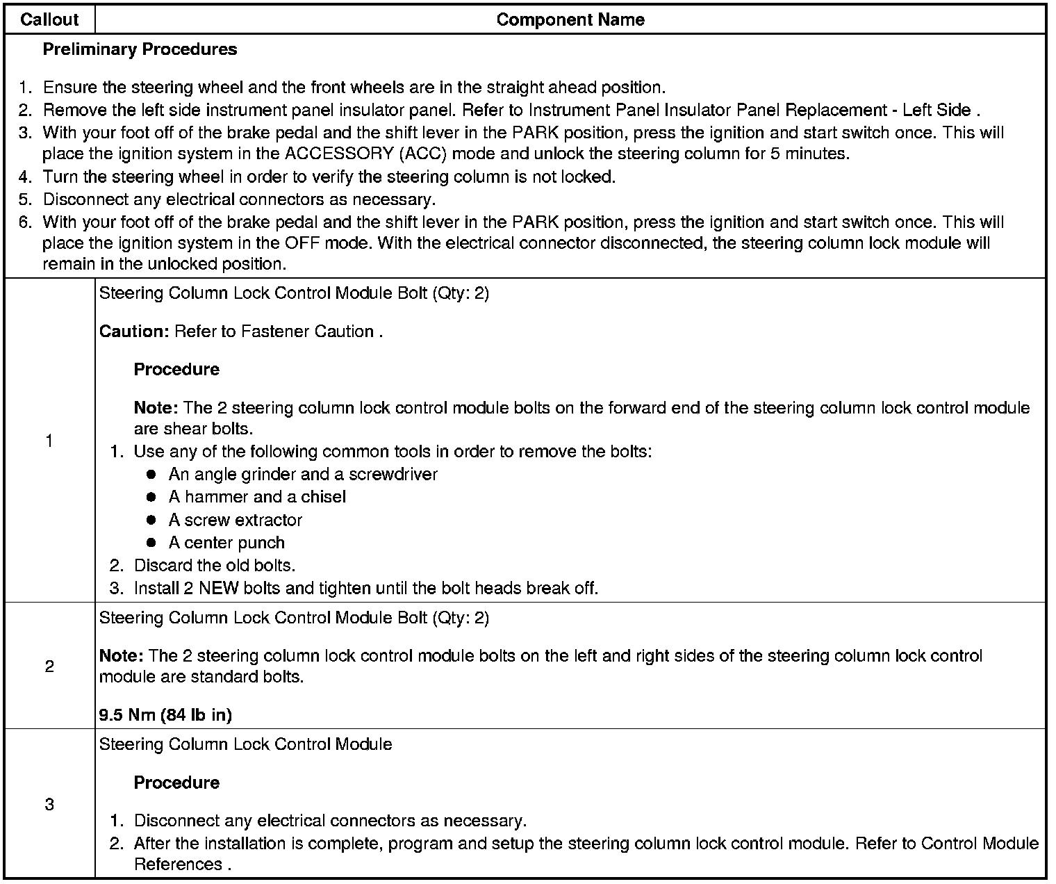 Steering Column Lock: Service and Repair