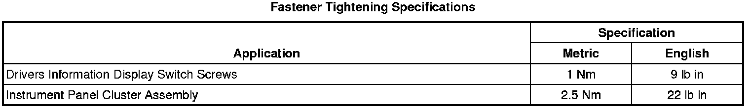 Instrument Panel, Gauges and Warning Indicators: Specifications