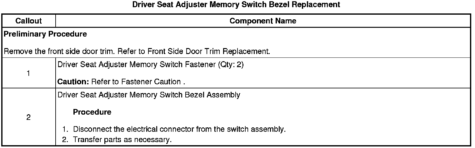 Driver Seat Adjuster Memory Switch Bezel Replacement