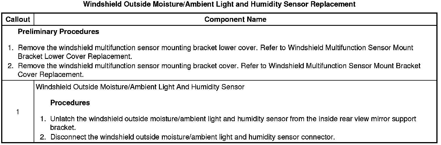 Windshield Outside Moisture/Ambient Light and Humidity Sensor Replacement