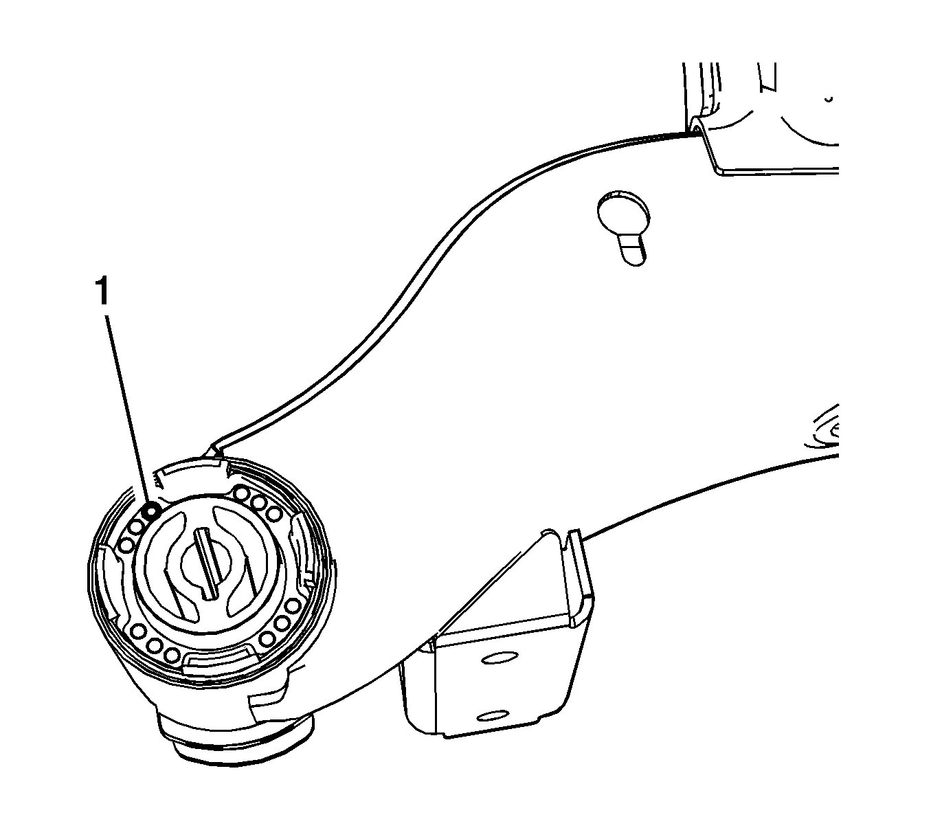 6.Using an 8 mm drill bit and a drill motor, drill multiple holes (1) in the rear suspension bushing.