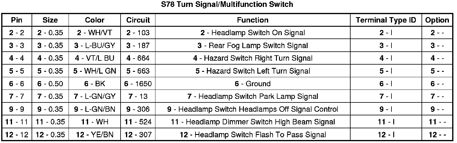 S78 Turn Signal/Multifunction Switch