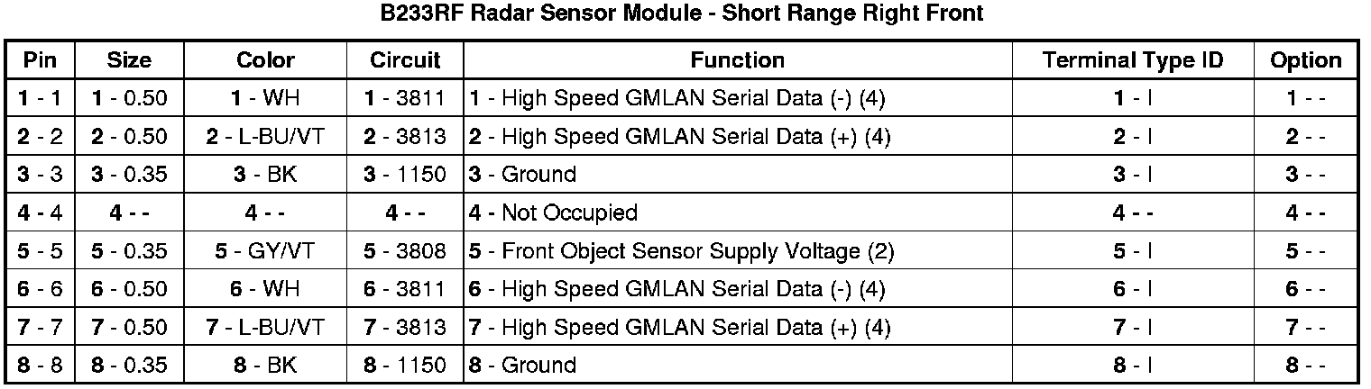 B233RF Radar Sensor Module - Short Range Right Front