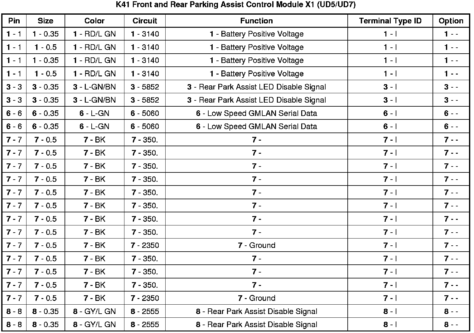 Front and Rear Parking Assist Control Module X1 (UD5/UD7)