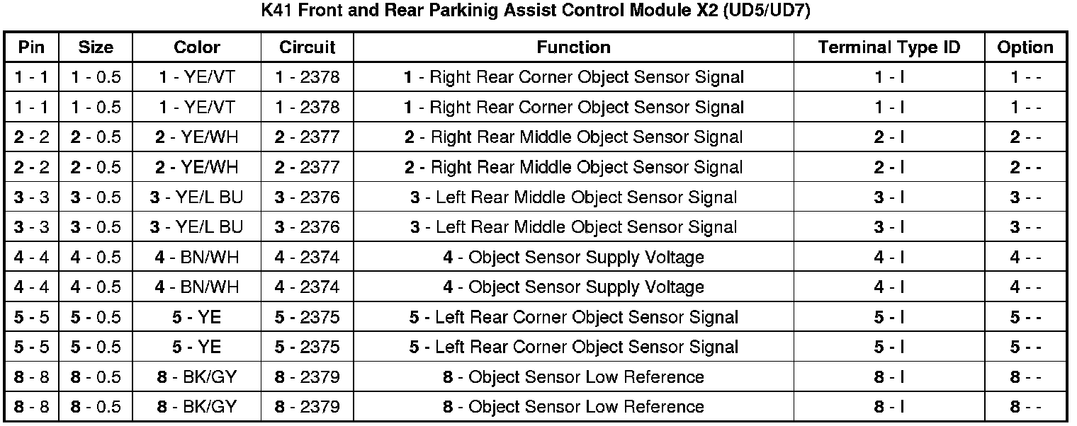 Front and Rear Parking Assist Control Module X2 (UD5/UD7)
