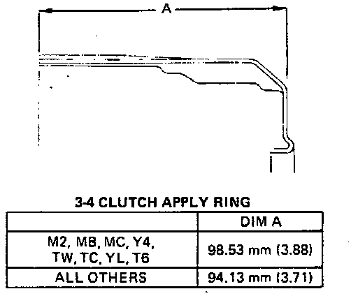 7. Inspect 3-4 clutch apply ring for bent tangs and correct tan length. Refer to image.